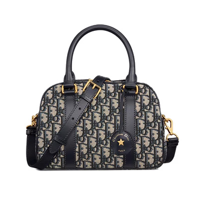 디올 D-Vibe 오블리크 자카드 미디엄 볼링백 블루 M1340UTZQ_M928