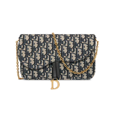디올 새들 오블리크 자카드 미디엄 체인 파우치 블루 S5907CTZQ_M928