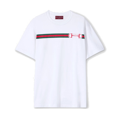 구찌 특유의 감각적인 프린트가 적용된 티셔츠입니다.