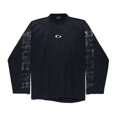 발렌시아가 트랜스페어런트 테이프 시프티드 오버사이즈 롱 슬리브 티셔츠 페이디드 블랙 850420TTVE59374