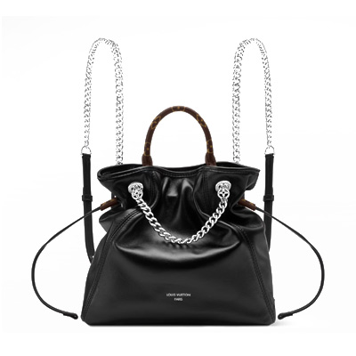 모노그램 데님 소재가 적용된 백팩 모델입니다.
