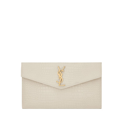 생로랑 업타운 크로커다일 엠보스 샤이니 가죽 파우치 블랑빈티지 565739 DND0J 9207