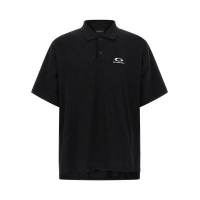 발렌시아가 로고 디테일 코튼 피케 폴로 셔츠 블랙