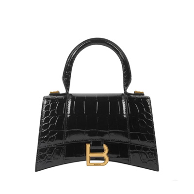 발렌시아가 아워글래스 크로커다일 엠보스 가죽 핸드백 블랙 5928331LRGM1000