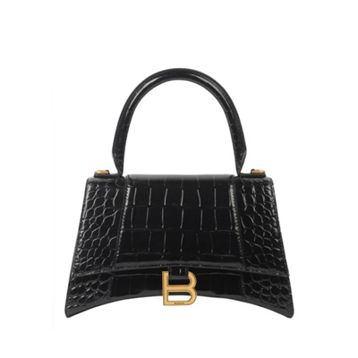 발렌시아가 아워글래스 크로커다일 엠보스 가죽 핸드백 블랙 5935461LRGM1000