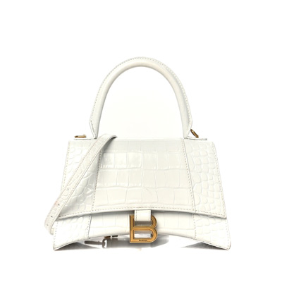 발렌시아가 아워글래스 크로커다일 엠보스 가죽 핸드백 화이트 5935461LRGM9016