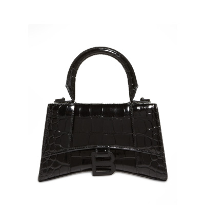 발렌시아가 아워글래스 크로커다일 엠보스 가죽 핸드백 블랙 592833