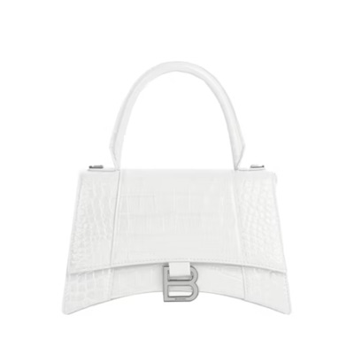 발렌시아가 아워글래스 크로커다일 엠보스 가죽 탑핸들 핸드백 화이트 5935461LR6Y9016