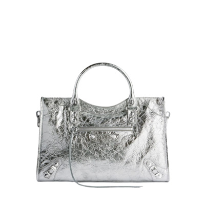 발렌시아가 르 시티 미디엄 메탈라이즈드 백 실버 모델.