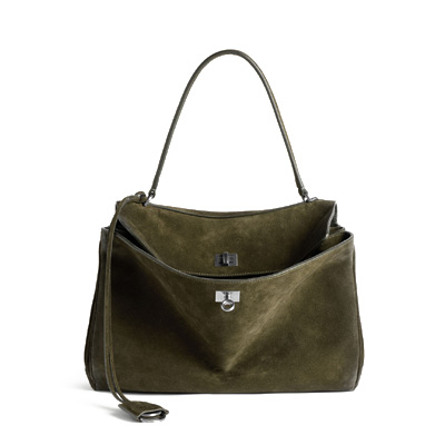 발렌시아가 로데오 미디엄 스웨이드 핸드백 카키 7897722AB4G3503