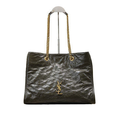 생로랑 니키 빈티지 가죽 쇼핑백 카키 871151