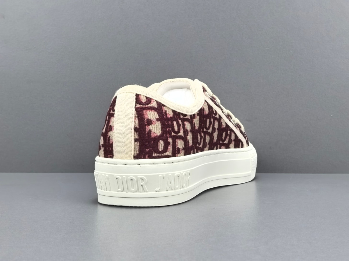 **디올 워크앤디올 오블리크 레드 캔버스 스니커즈 (KCK211OBE S16V)**는 디올 하우스의 상징적인 오블리크 패턴을 레드 컬러로 자수 처리한 여성 전용 로우탑 스니커즈입니다.
