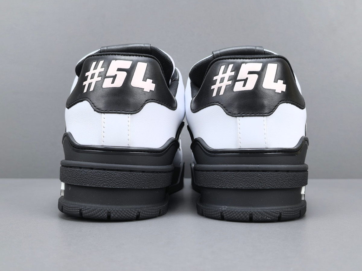 루이비통 1A9ADA LV 트레이너 스니커즈 블랙 & 화이트는 디자이너 버질 아블로가 재해석한 클래식 농구화 실루엣에서 출발한 하우스의 대표적 남성 스니커즈입니다.