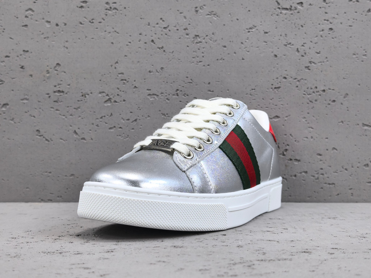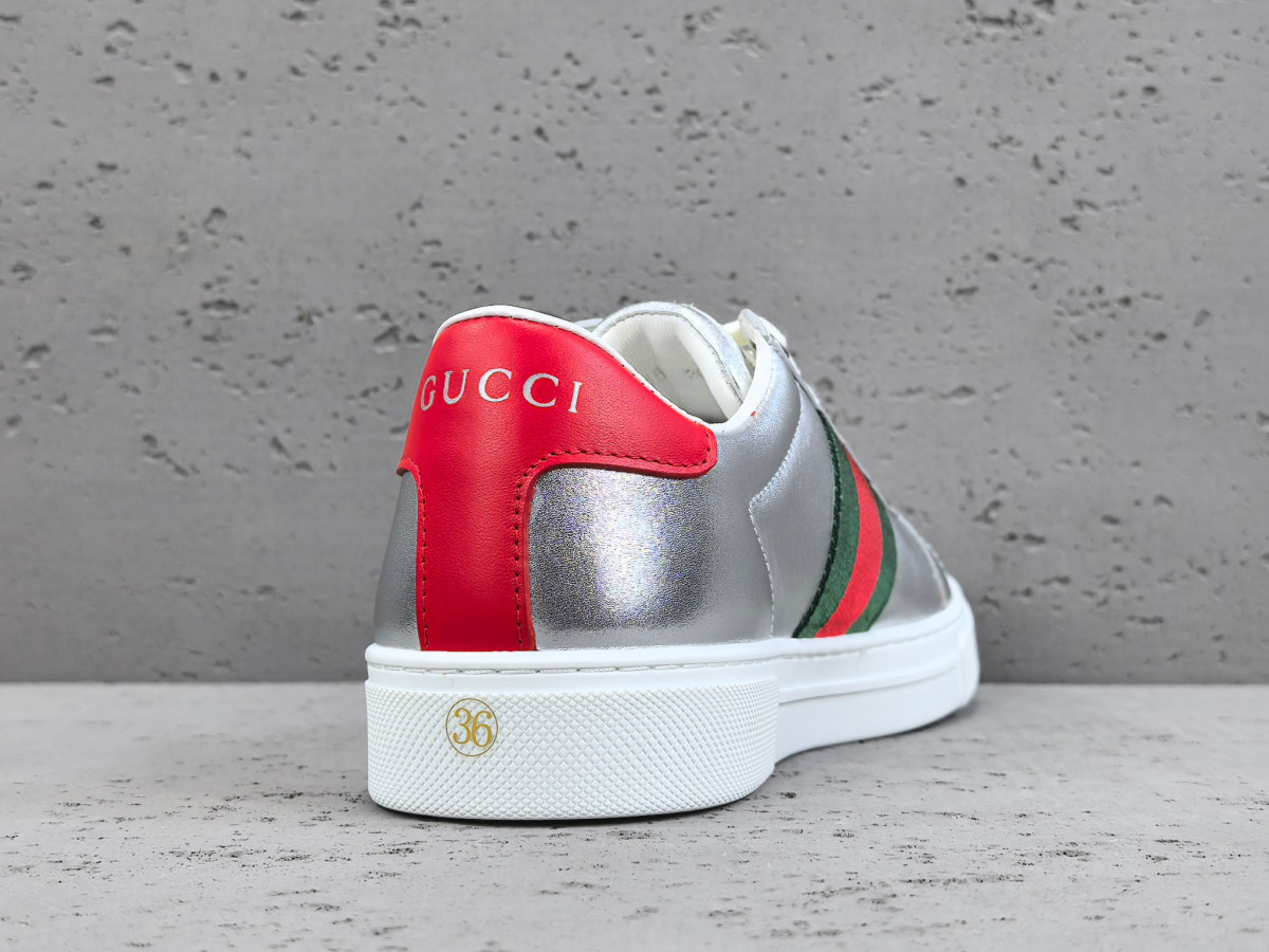 **Gucci 에이스 스니커즈 실버 (모델 번호: 757944AACPB8148)**는 구찌의 상징적인 에이스 시리즈를 트렌디하게 재해석한 여성용 스니커즈로,