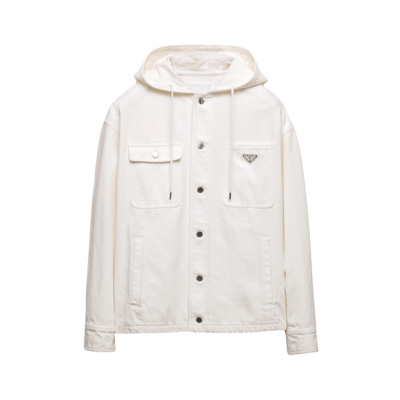 프라다의 아이코닉한 미학이 담긴 후드 데님 셔츠입니다.