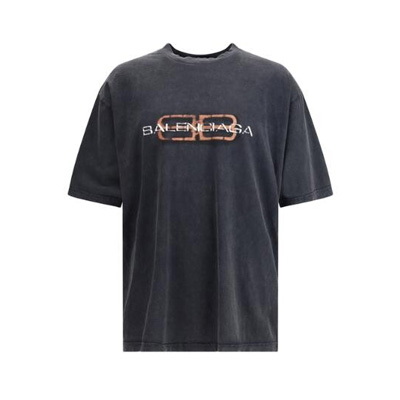 발렌시아가의 아이코닉 로고가 프린트된 클래식 크루넥 티셔츠입니다.