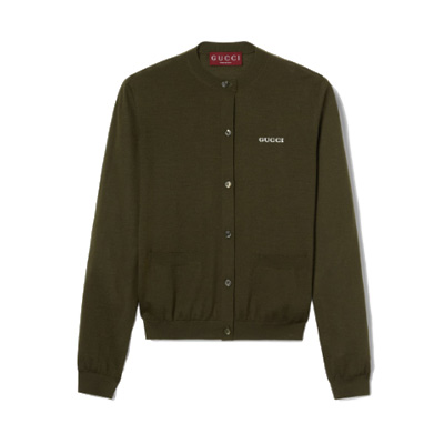 구찌 캐시미어 실크 라운드넥 로고 자수 가디건 그린 830825 XKEWD 3071