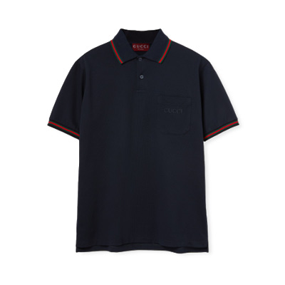 구찌 코튼 피케 폴로 셔츠는 브랜드의 감각적인 캐주얼 스타일을 보여줍니다.