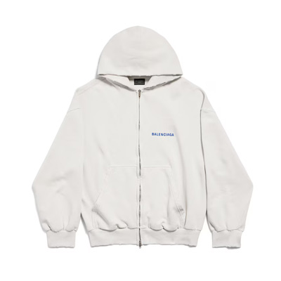 발렌시아가 백 로고 레귤러 핏 집업 후디 더티 화이트 블루 803264 TS VP1 8016