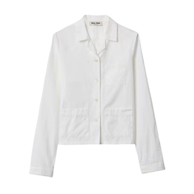 미우미우 포플린 셔츠는 가볍고 통기성이 좋은 포플린 소재로 제작되었습니다.