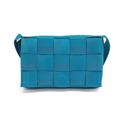 보테가 베네타의 아이코닉한 인트레치아토 위빙이 반영된 패브릭 크로스백입니다.