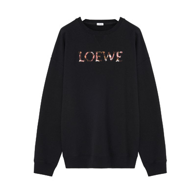 전면 가슴 부분의 로에베 아나그램 로고 자수가 브랜드의 아이덴티티를 강조합니다.