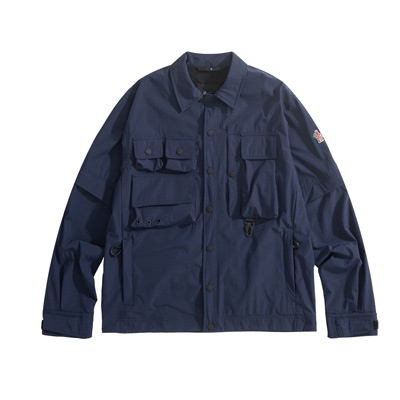 외부는 필드 자켓 스타일로, 다수의 플랩 포켓과 조절 가능한 허리 스트링이 적용되었습니다.