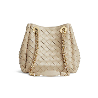 보테가 베네타 특유의 미니멀한 디자인에 체인 스트랩을 더해 현대적인 감각을 완성했습니다.