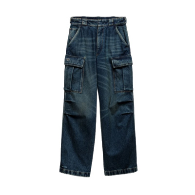 프라다의 모던한 감성을 담은 데님 카고 진 네이비 컬러 모델 GEP396입니다.