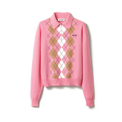 미우미우의 고급스러운 감성을 담은 캐시미어 하프 집업 폴로 셔츠입니다.
