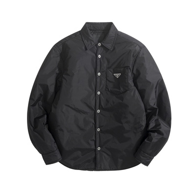 가슴 부분에는 프라다의 트라이앵글 로고가 부착되어 브랜드 아이덴티티를 강조합니다.