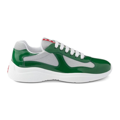 프라다의 상징적인 아메리카스 컵 라인에서 선보이는 샤이니 가죽 스니커즈입니다.