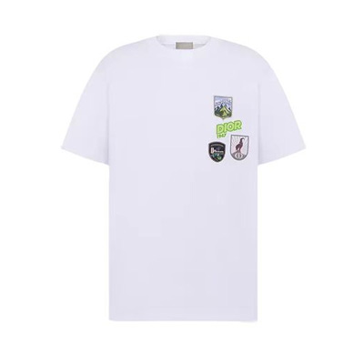 디올의 감각적인 그래픽 디자인이 돋보이는 마운틴 코튼 티셔츠입니다.
