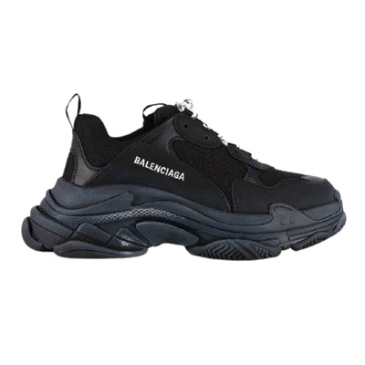 발렌시아가 트리플 S 트레이너 트리플 블랙은 브랜드의 대표적인 청키 스니커즈 라인 중 가장 상징적인 모델입니다.