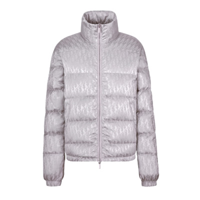 디올 오블리크 다운 재킷은 세련된 그레이 톤과 하우스의 아이코닉 패턴이 조화를 이룬 하이엔드 아우터입니다.