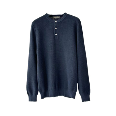 로로피아나 헨리넥 긴팔 티셔츠 남성 네이비 코튼 저지