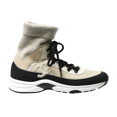 샤넬 니트 리브드 CC로고 스니커즈 뉴트럴 베이지 여성용