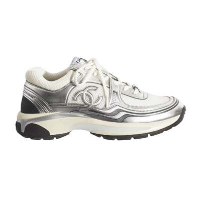 샤넬 패브릭 라미네이티드 여성 스니커즈 화이트 실버 G39792 Y56368 K5451