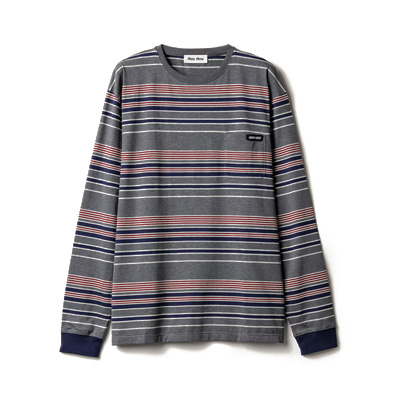 미우미우 특유의 프리피 감성이 담긴 스트라이프 코튼 저지 티셔츠입니다.
