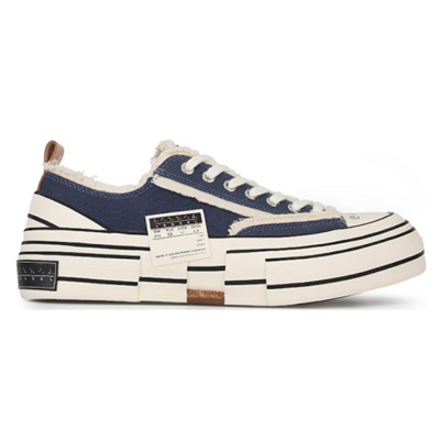 엑스베셀 G.O.P. 로우 네이비 S19X001N은 브랜드의 아이코닉한 해체주의 디자인 감성을 담은 대표적인 로우탑 스니커즈입니다.