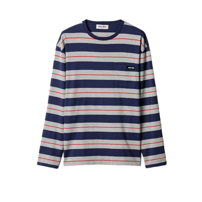 #미우미우 #롱슬리브티셔츠 #코튼저지 #스트라이프티셔츠 #그레이네이비 #여성티셔츠 #MJL014