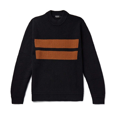 부드러운 캐시미어 소재로 제작된 제냐 스트라이프 립 스웨터입니다.