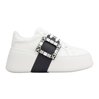 부드러운 화이트 레더로 구성된 로저비비에 여성 스케이트 스니커즈입니다.