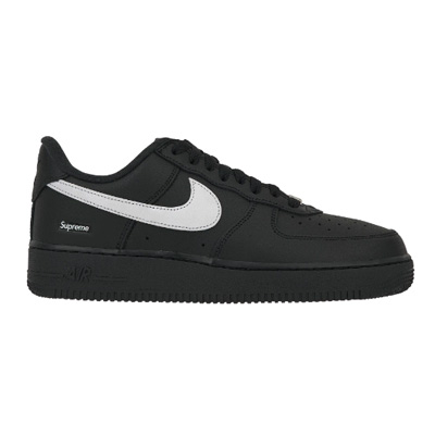 나이키와 슈프림의 협업으로 출시된 에어 포스 1 로우 블랙 모델입니다.