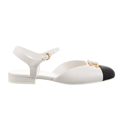 CC 로고가 적용된 슬링백 형태의 메리제인 플랫 실루엣입니다.