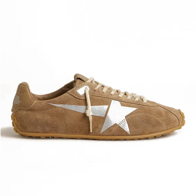 토바코 스웨이드 어퍼에 실버 스타 포인트가 들어간 골든구스 마라톤 스니커즈입니다.