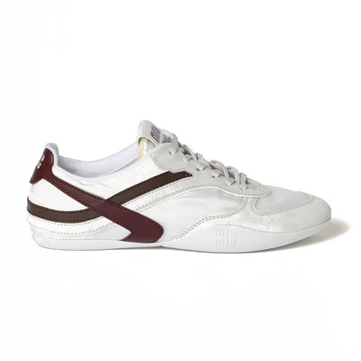 기능성 패브릭과 스웨이드를 조합한 미우미우 스니커즈입니다.