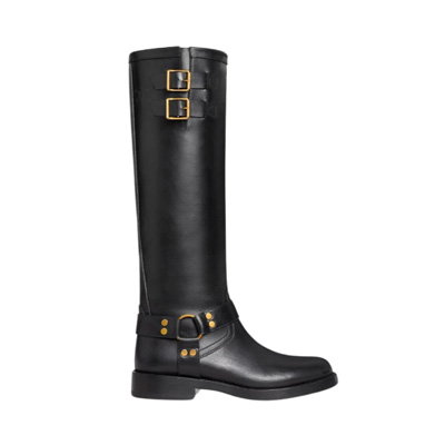 셀린느 베지탈 태닝 카프스킨 공용 하이 바이커 부츠 블랙 골드