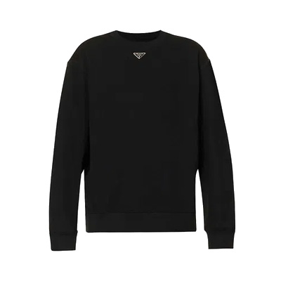 프라다 트라이앵글 플라크 코튼 공용 스웨트셔츠 블랙