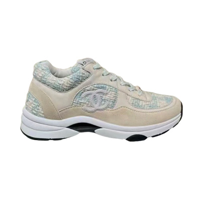 샤넬 코튼 트위드 스웨이드 카프스킨 스니커즈 핑크 에크루 G38299
